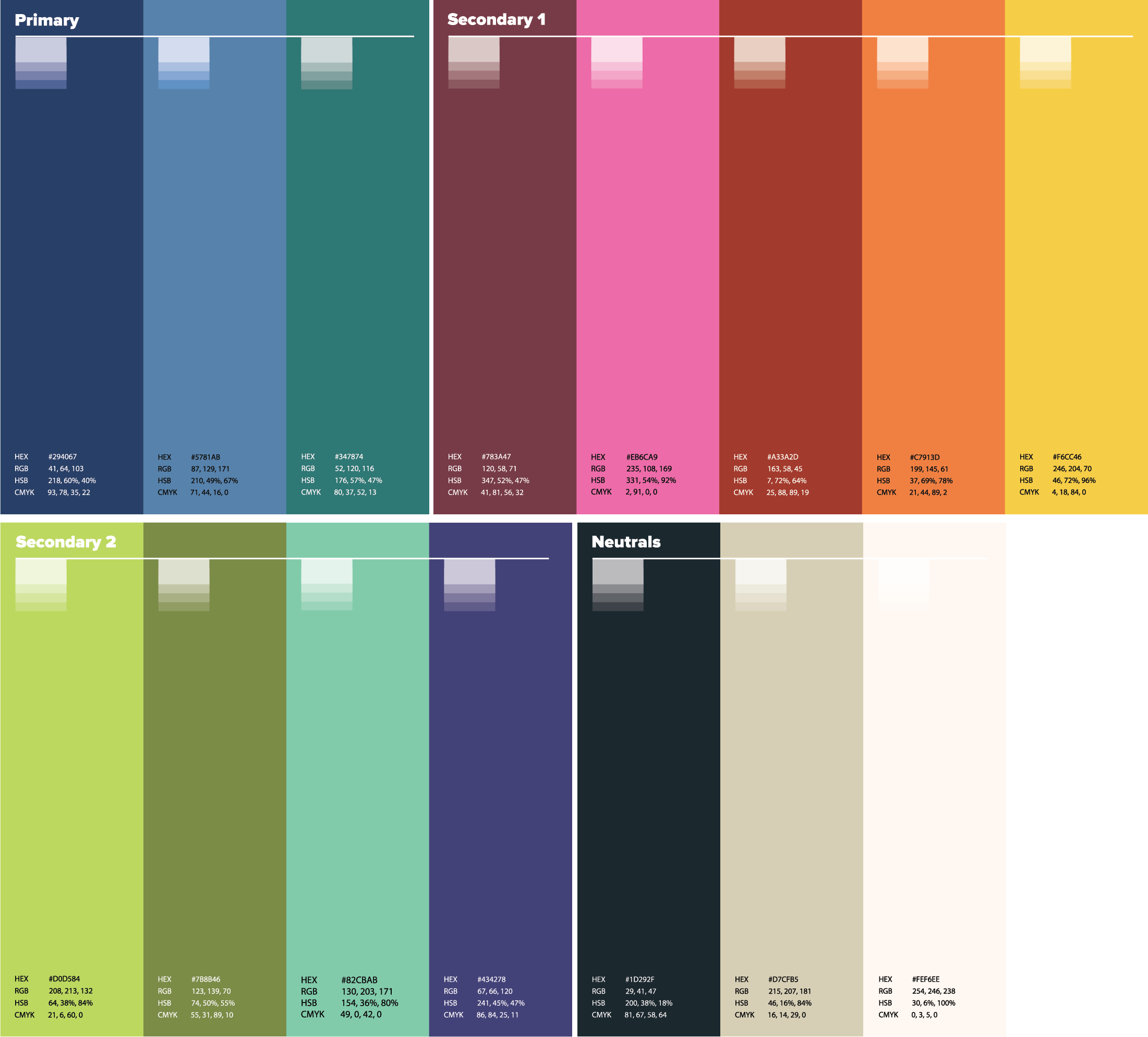 Solution To address contrast and usability challenges, the color palette was rebuilt using the Library's paint and acoustic panel colors as a foundation. Hues were refined and adjusted for saturation and contrast to improve hierarchy and accessibility. The resulting palette supports the same functional range as the previous system while performing more effectively across print, digital, and environmental applications.